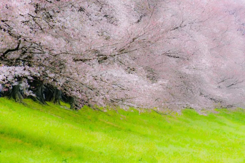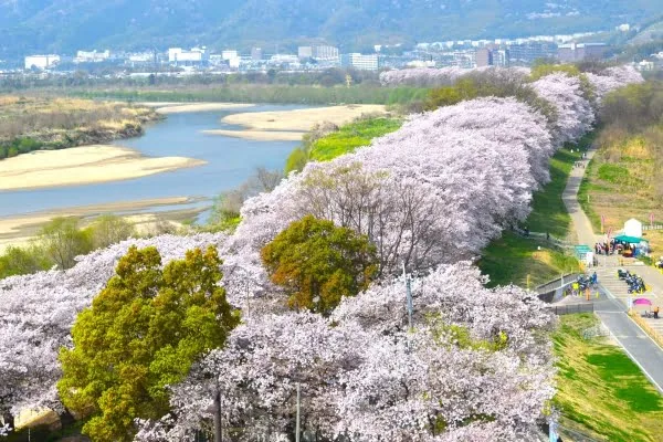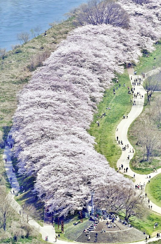 河川敷ならではの抜け感と桜の密度が両立した希少ロケ。