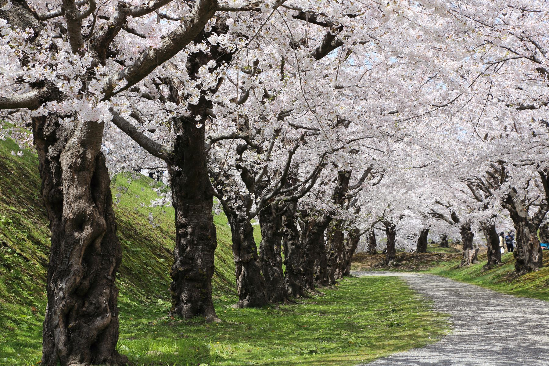一直線に伸びる桜トンネルで、奥行きのある写真が簡単に撮れるのが最大の魅力。