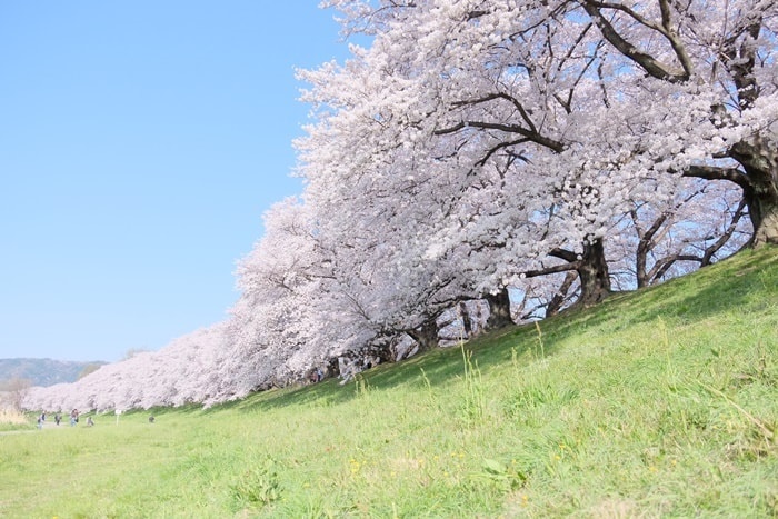 背割堤の圧倒的な桜並木を活かした“王道彼女感”。