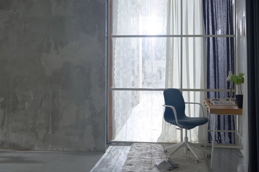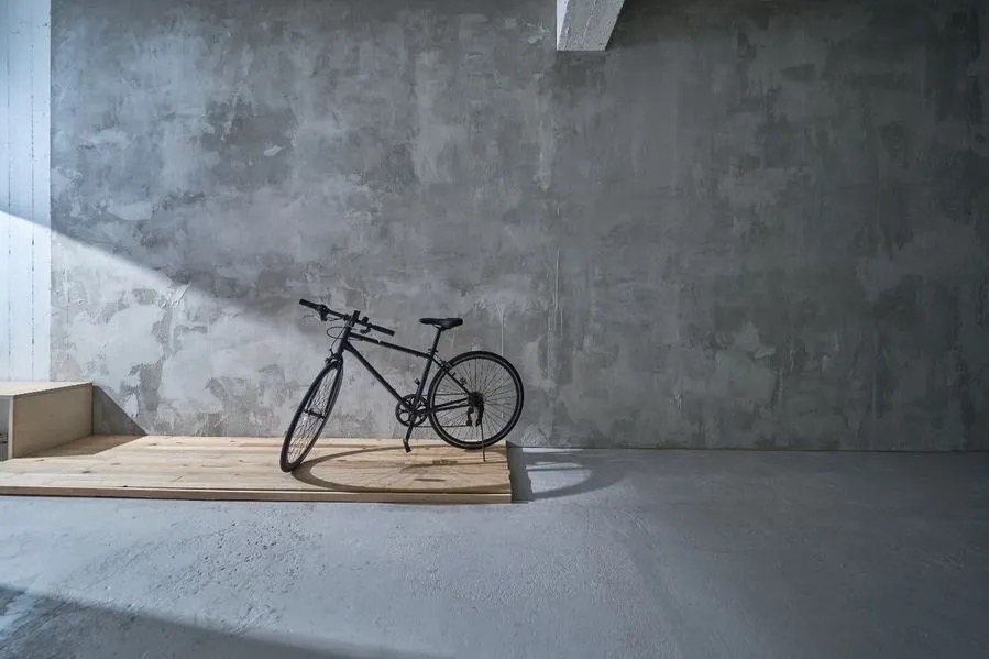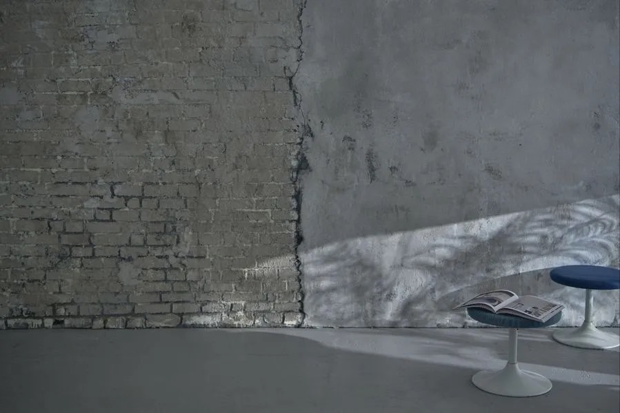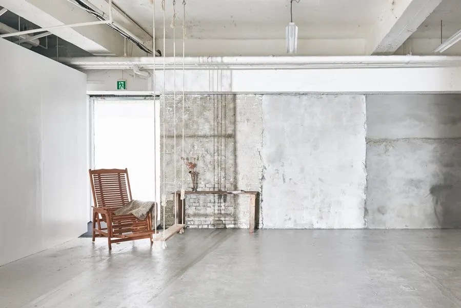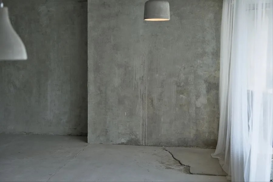 無機質なコンクリート調の壁と、やわらかく差し込む自然光。