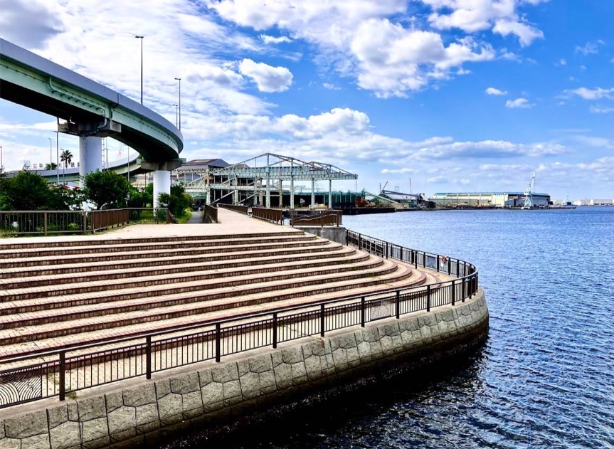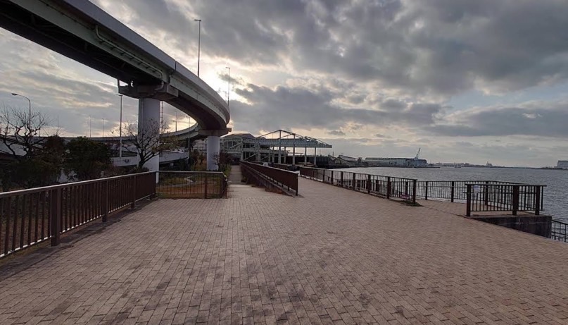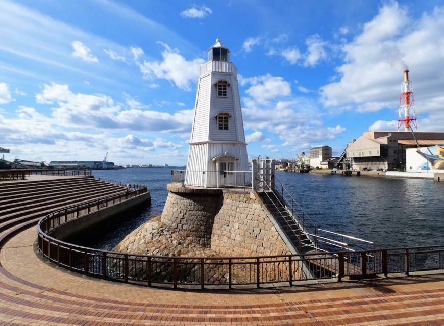 明治の面影を残す白い灯台と、目の前に広がる大阪湾。