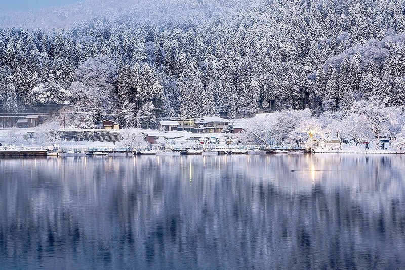余呉湖は、白と淡いブルー、グレーだけで構成されたミニマルな世界となり、モデルの存在感や表情をより強く引き立ててくれます。雪化粧した木々や湖面に映る柔らかな光は、透明感のあるポートレートや、どこか儚く幻想的な雰囲気の写真を生み出します。降り積もった雪の上に残る足跡、吐く息が白く漂う瞬間、コートやマフラーが風に揺れる様子など、冬ならではのディテールも印象的に切り取ることができ、クールで静かな中にも温もりや感情を感じさせる作品が期待できます。観光地の喧騒から離れた余呉湖ならではの落ち着いた空気感が、撮影する側もされる側も自然体にしてくれ、ゆったりとした時間の流れの中で、心に残る雪のポートレートをじっくりと創り上げることができます