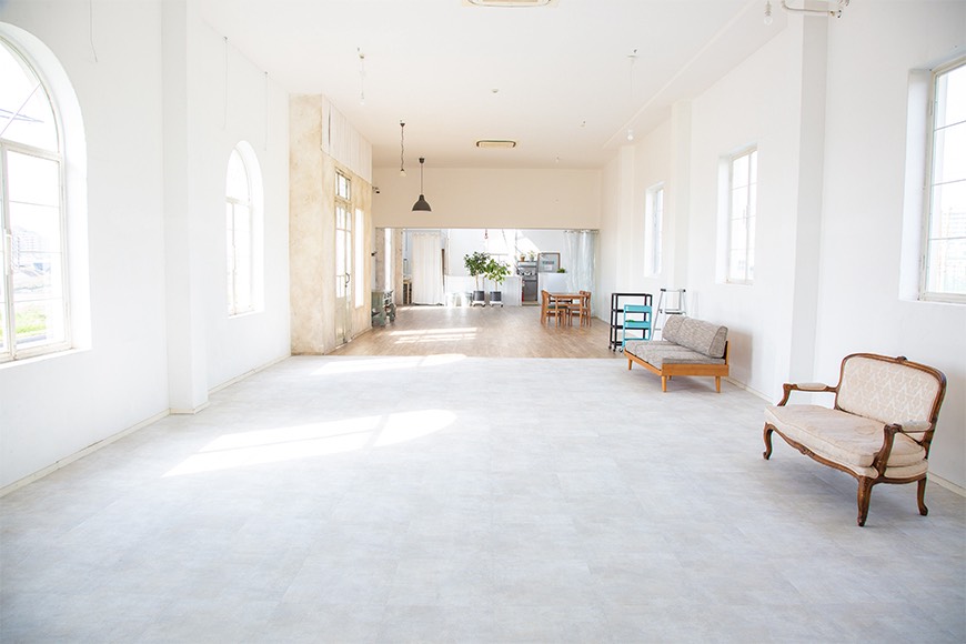 柔らかな自然光が部屋いっぱいに広がる2階の広い白スタジオです!