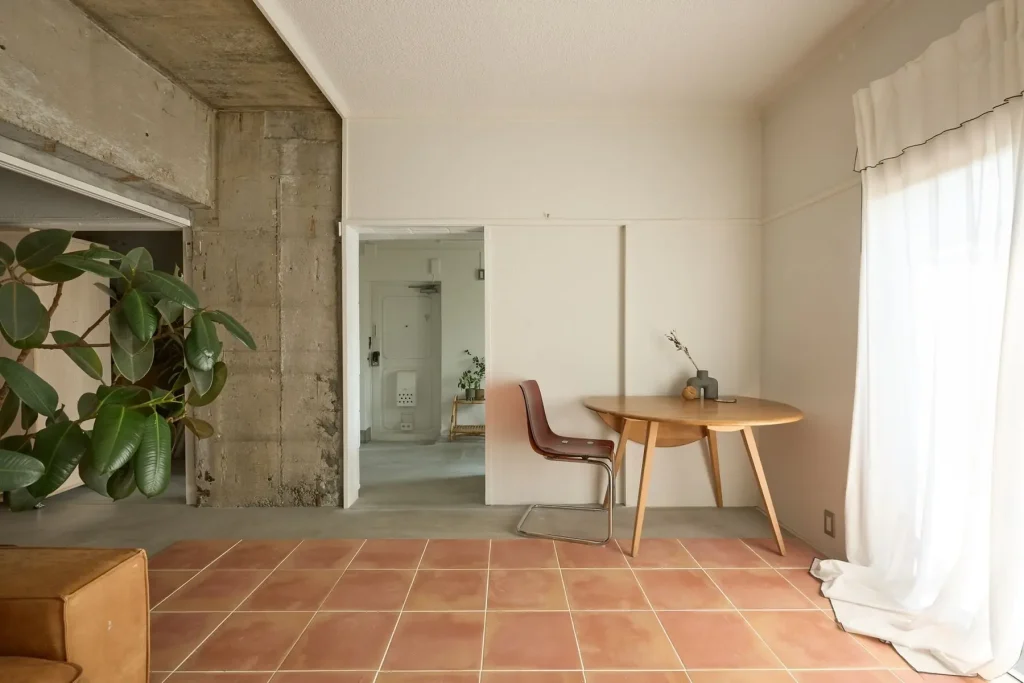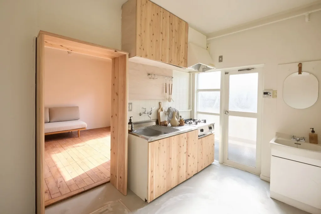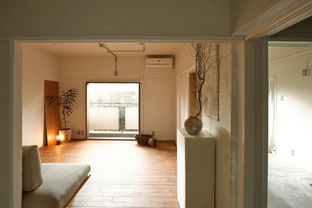 白壁とウッド床、やわらかく差し込む自然光。