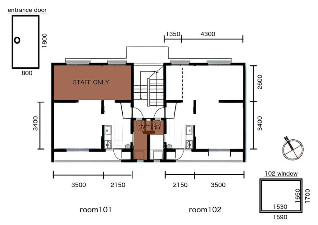 元は鉄工所の社宅として建てられた建物、APartMENT の101.102号室の2部屋を使ったスタジオです。