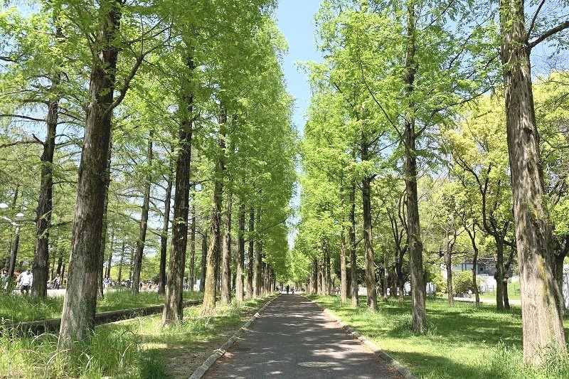 自然光が美しく抜ける芝生や並木道など、