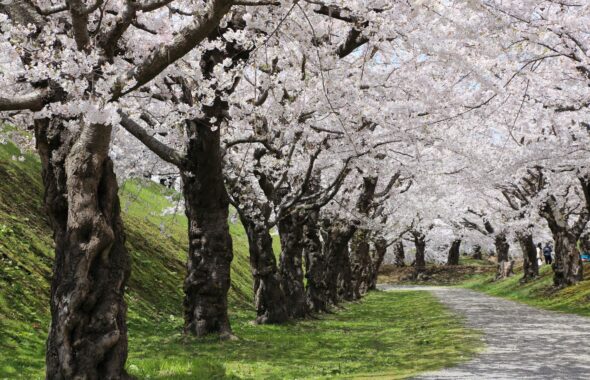 白壁と石垣、そして淡い桜色が重なり合うこの季節だけの特別なロケーションです。