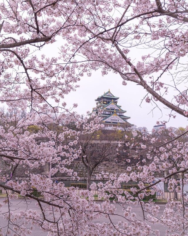 春、満開の桜に包まれる大阪城。