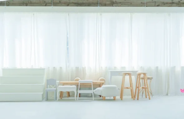 高い天井から差し込む自然光が、やわらかく人物を包み込み、